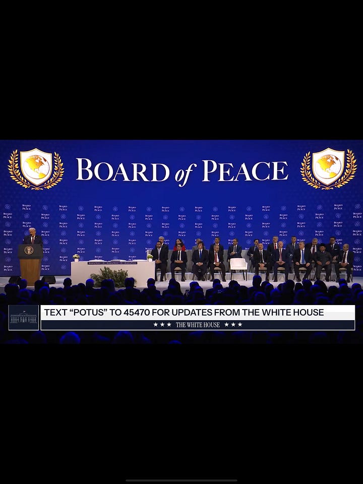 In my mind, it is the ultimate and most dangerous step in his and Putin's takeover of the world order. While the NATO nations' focus is distracted by Trump and his threats against Greenland, and DAVOS allows him to stand and slam NATO, he uses the event to promote his "Board of Peace," an international scam that he is the Chairman and final say on all issues. Only he can admit or refuse entry into the group. Only he can approve an action of the group. Only he can dissolve the group. And, only he can accept and approve of the actions of the group. And yet, it is not nations that join the group, but individuals of nations — if they pay one billion dollars to join.