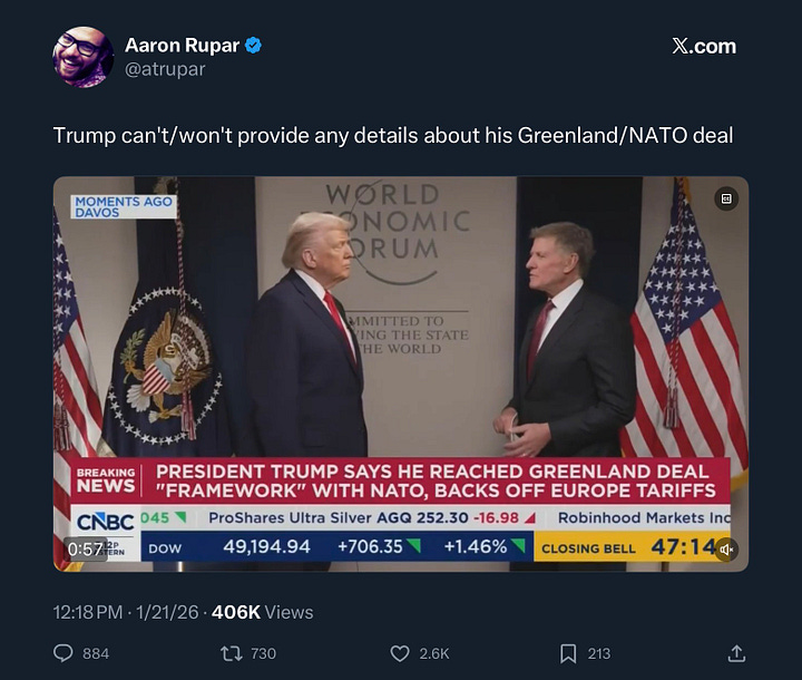 In another part of his speech, Trump returned to his obsessive campaign to steal Greenland from Denmark—and repeatedly insulted NATO, the most successful alliance in human history, as “useless” and dependent on American generosity.