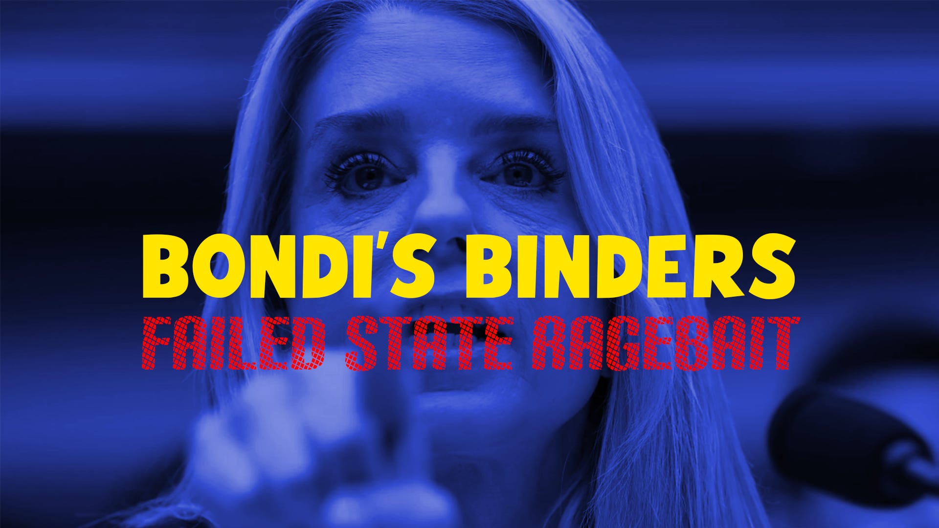 Pam Bondi is the Trump regime in concentrated form, an amoral, sociopathic cult member both being enriched and escaping her own accountability by abusing her unmerited power. She is in her position to not just cover up for Donald Trump but for her own long history of aiding and abetting criminals.