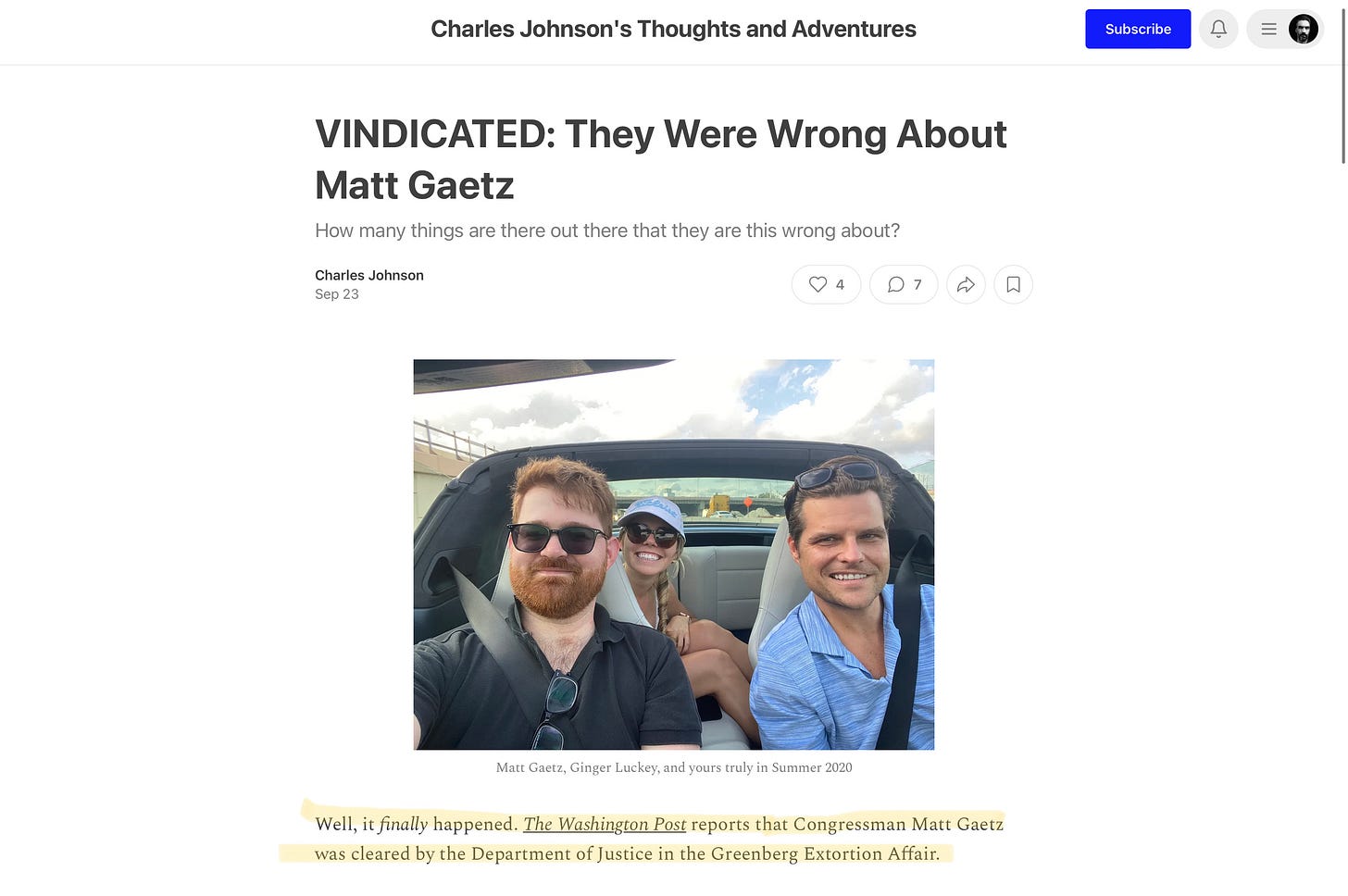 Chuck is literally best friends with accused pedophile sex trafficker Matt Gaetz and accompanied Gaetz to the 2018 State of the Union address.