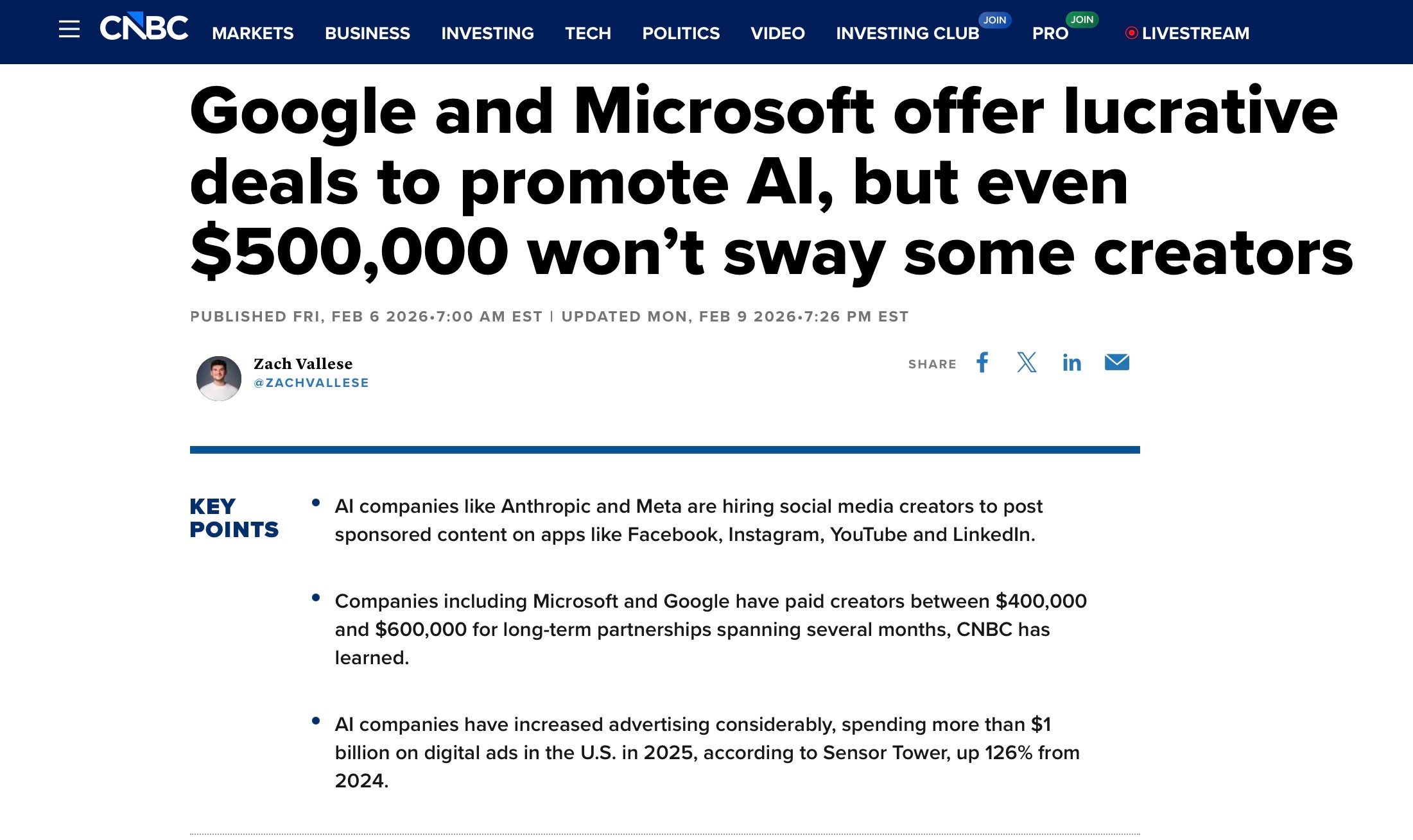 Many of the people you may see online posting effusively about “something big” are being paid very well for it. Microsoft and Google are reportedly paying $400K-600K to influencers to tell you how amazing the chatbot future is going to be. Or how scary, depending on the marketing campaign.
