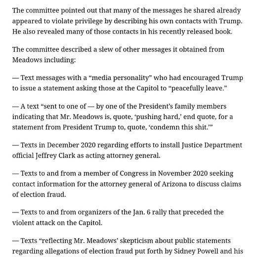 At an historic Congressional hearing last week, Meadows’ Chief of Staff Cassidy Hutchinson said her boss had spoken to both Roger Stone and Mike Flynn on January 5th, 2020, and that Meadows had taken calls in his limo that she was not allowed to overhear on January 6th itself. There was a clear inference that it was Stone and/or Flynn in communications with Meadows on the day of the insurrection.
