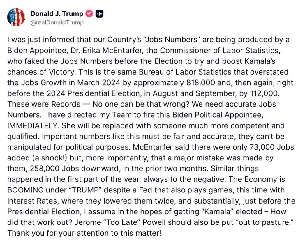 REPORTER: Why did you fire the head of the Bureau of Labor Statistics?
