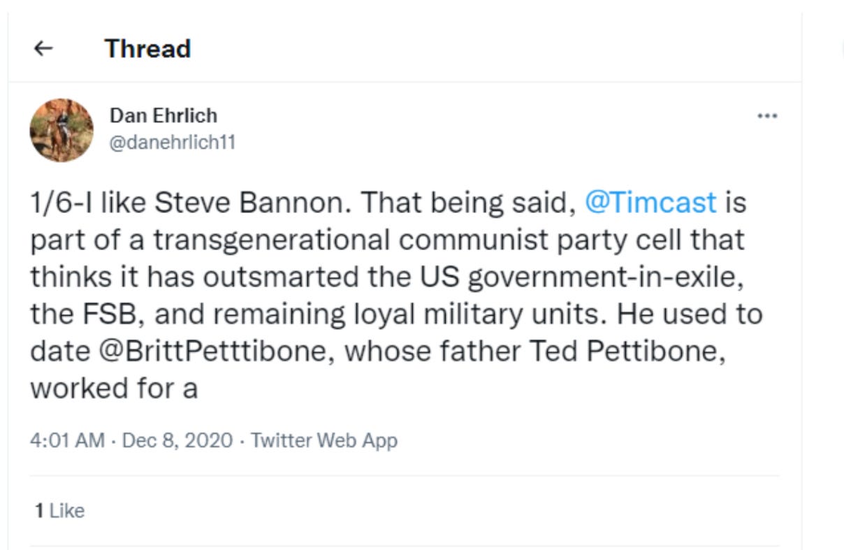 “I like Steve Bannon” is a sentence you typed of your own accord while Steve Bannon was plotting the overthrow of democracy with his collaborators, Mike Flynn and Erik Prince. Are you sure you want to be throwing accusations around, sport?