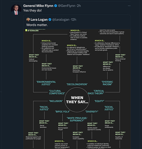 The central allegation remaining in the Flynn case—most of it was thrown out—is that I called him a “Nazi.” Nevertheless, this morning, instead of facing me in court, Flynn reposted a wildly racist conspiracy theory tweeted by South African propagandist Lara Logan that defends colonialism because it preserves “European influence.”
