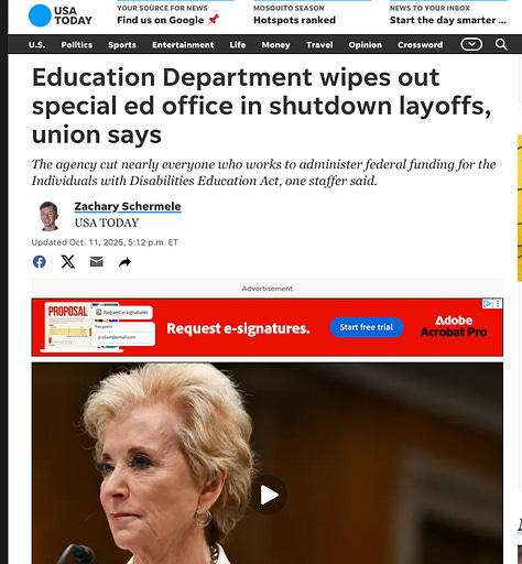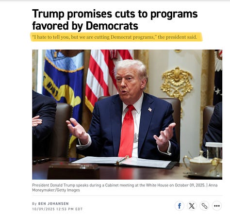 A few days ago, commenting on layoffs during the government shutdown, Donald Trump said: “I hate to tell you, but we are cutting Democrat programs.” Among the “Democrat programs” Trump had OMB Director Russ Vought cut are all special education programs, and the ability for America to detect and fight deadly diseases.