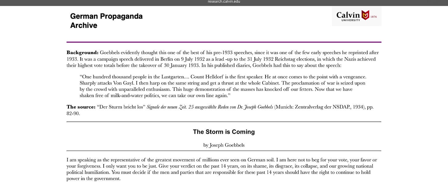 The “storm” was common in Nazi imagery, but Goebbels 1932 speech was one of his favorites; he repeated the “Storm, break loose” metaphor in numerous later speeches. “The Storm Is Coming” is also one of the most common QAnon slogans, which has been reposted by Donald Trump more than once.