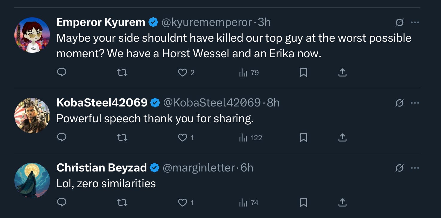 The pushback from the political right to my comparison to Goebbels has been very interesting. The responses range from—“you’re crazy” to “you are correct to be afraid.” Regardless, the resonance is clear on all sides: Stephen Miller gave a Nazi speech.