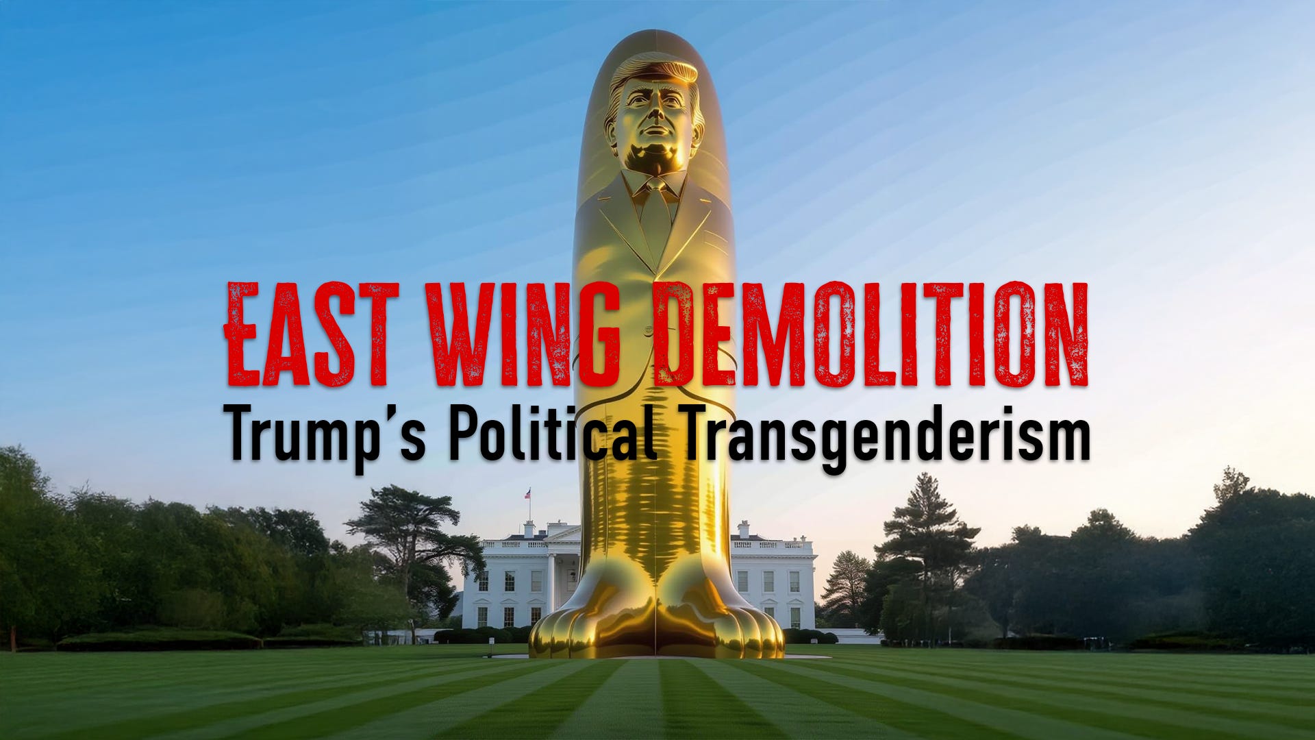 But now Trump is performing an act of forced gender reassignment surgery on America—in a very literal way. By demolishing the East Wing of the White House, he is attempting to annihilate the feminine heart of America—to erect a giant golden phallus in its place.