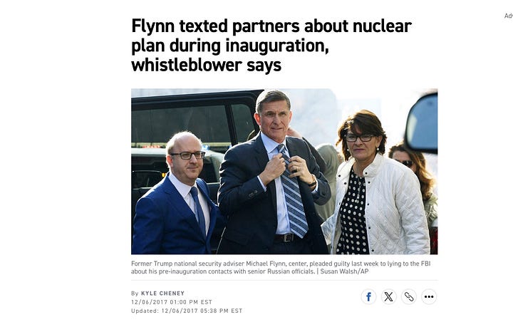 Flynn is in a tough spot because of the Epstein files. While I have no evidence that Flynn and Epstein connected directly, there are numerous emails and texts where Flynn’s legal troubles—for lying about talking to the Russians during the 2016 transition—are being carefully monitored and discussed. Flynn was central to the plan to steal the 2016 election, and it was vital to Epstein that Flynn not flip on his co-conspirators.