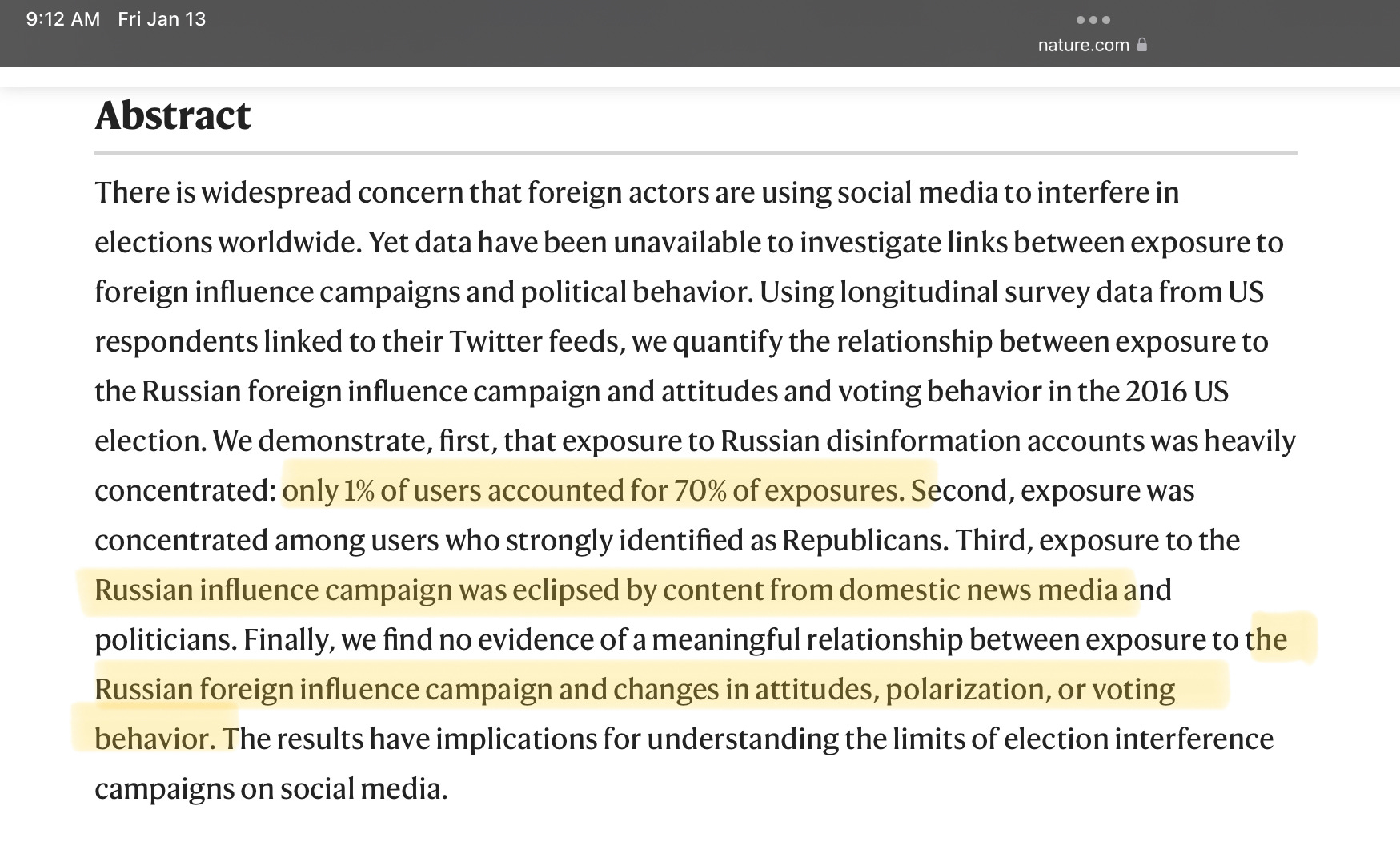 Only looking at one small aspect of a coordinated multi pronged influence campaign is going to severely underestimate its impact.