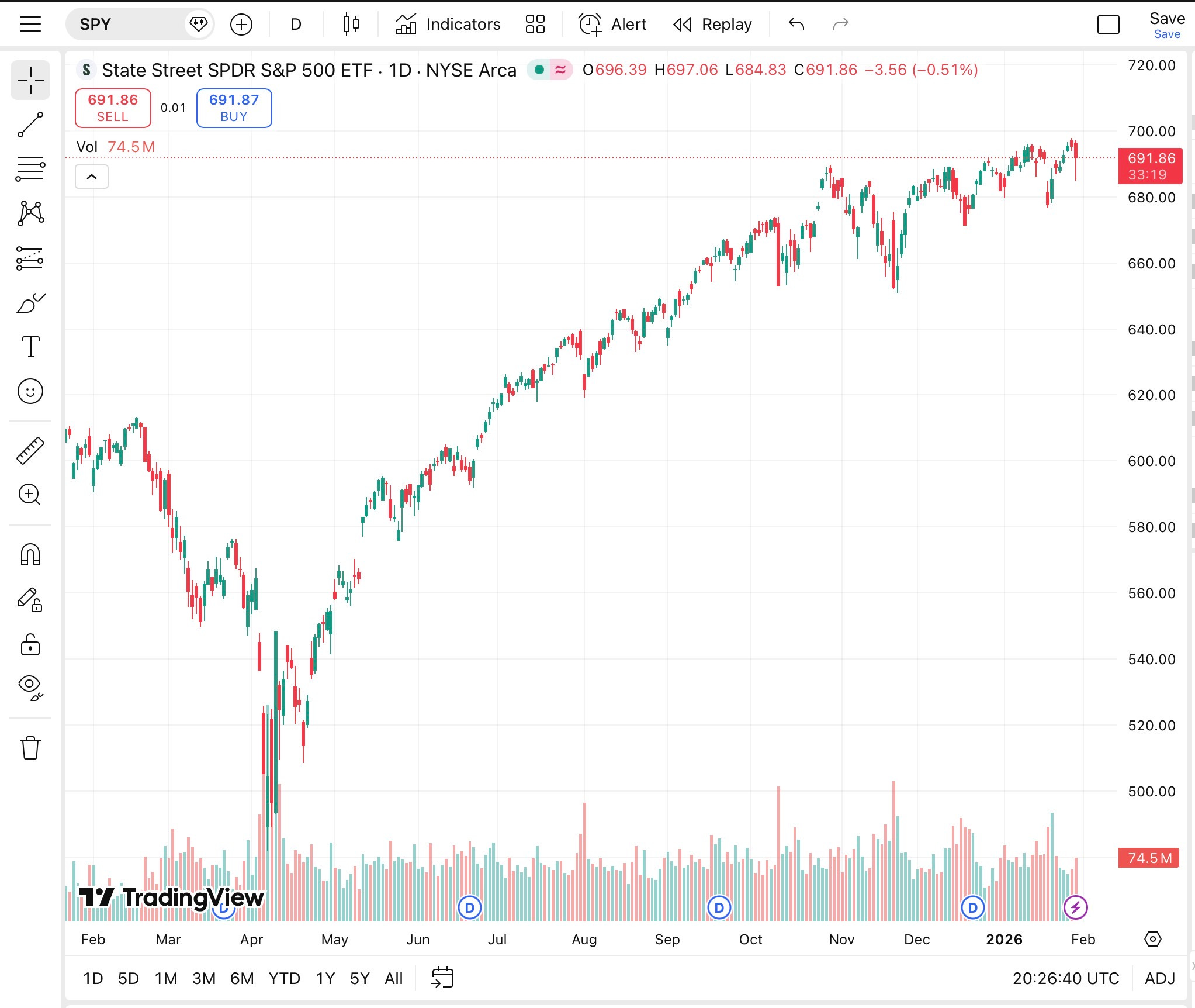 Nevertheless, the overall stock market is near all-time highs. Despite Trump hobbling the economy with tariffs on “Liberation Day” (that’s the big dip in the S&P 500 chart below), something has kept the market inflated.