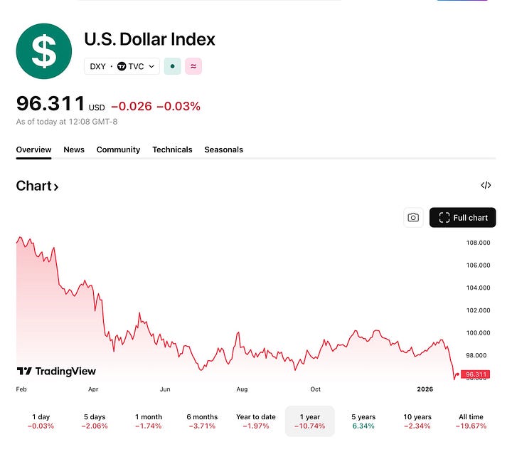 Two big tells about the true condition of the U.S. economy: the dollar is collapsing, and metals are all exploding to all-time highs simultaneously. This represents people moving assets away from elevated risk in the American system. People don’t want to be overexposed to an economy run by a regime so wildly out control.