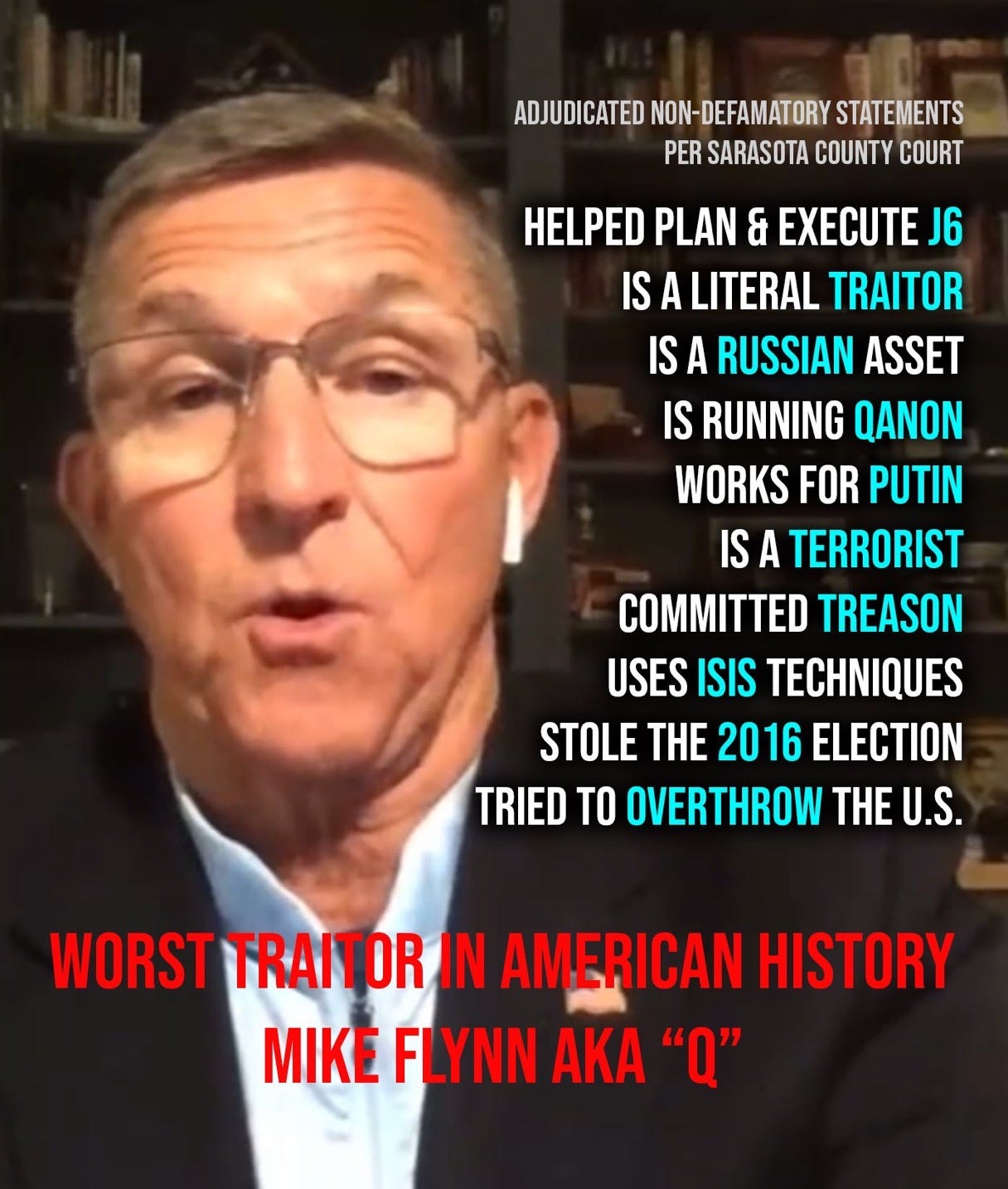 Full disclosure: Mike Flynn sued me for defamation approaching 2 years ago as a tactic in his “fifth generation warfare” strategy to silence me. The majority of the complaints have been dropped but the case is ongoing. I summarized the statements that were thrown out of court below, so feel free to say them without concern of legal ramifications.
