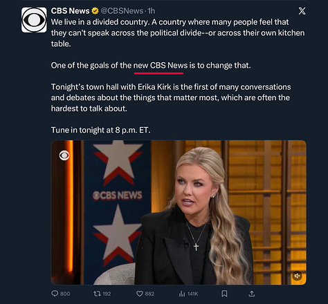 For the last week, CBS has obsessively promoted an interview with Charlie Kirk’s widow Erika on “the new CBS News” in a “town hall” with self-described “unhinged Zionist” Bari Weiss. JD Vance has taken full advantage of Charlie Kirk’s murder as well—Vance even hosted Kirk’s podcast. Erika Kirk has already indicated that she and Turning Point USA will endorse Vance for 2028.
