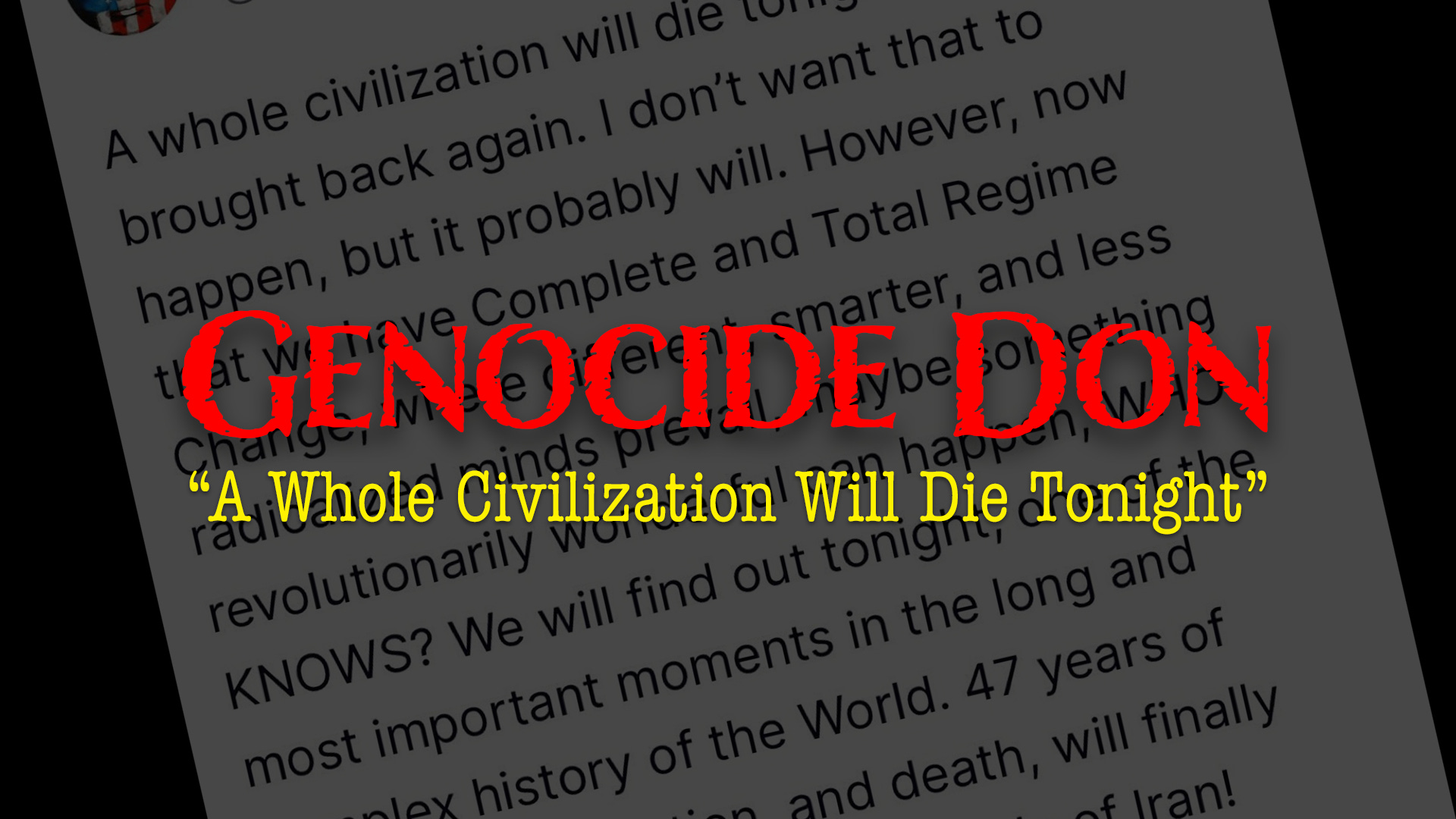 Genocide Don: “A Whole Civilization Will Die Tonight”