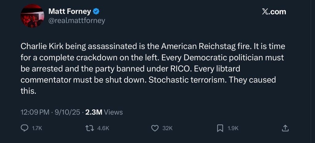 I do wonder if some in the Republican Party were behind the murder of Kirk. In order to declare Marshall law and designate the dems a terrorist party. Is this too far fetched? As the article says, they are now making a political hero out of Kirk. I do know that I would not like to live in the US right now. Too many itchy trigger fingers and not enough critical thinking going on!