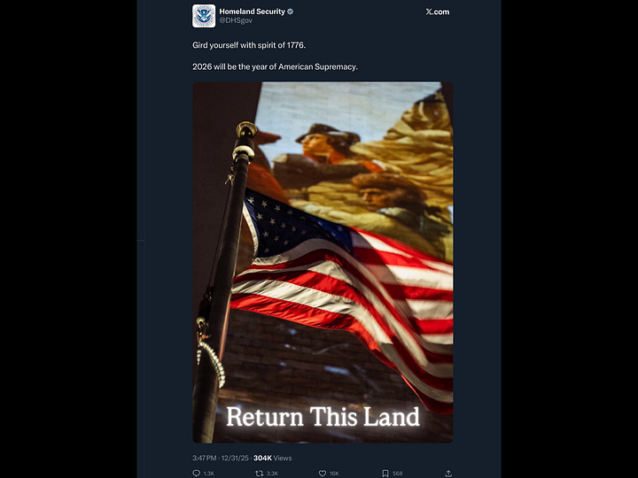 “2026 will be the year of American Supremacy” is not a dog whistle; it’s an open threat to anyone who isn’t white.