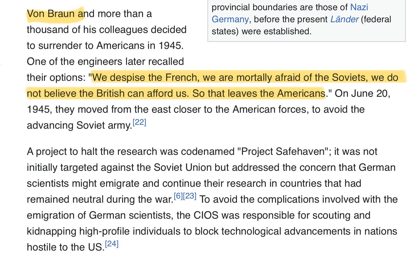 The Nazi diaspora, both directly from Germany after WWII, and from the places Nazis went for refuge, particularly apartheid South Africa, is alive and well and now inside the US federal government puppeteering Donald Trump. It is no coincidence that 1) the primary route for Nazi infiltration into the US was rocket scientists, and 2) the obsession of the most dangerous Nazi since the original, Elon Musk, is rocket scientists.
