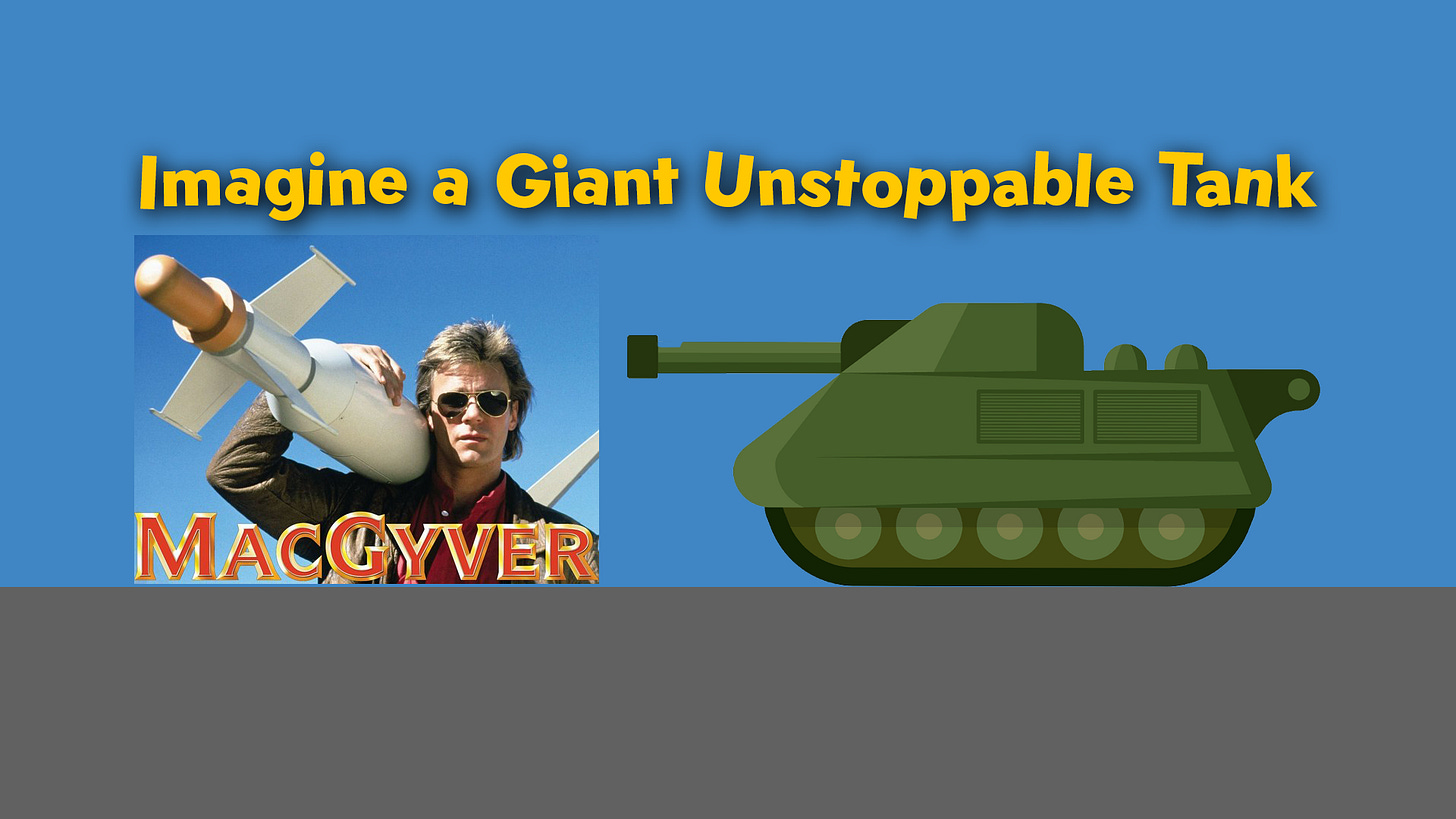 My goal has been to steal the engineering plans of the tank so we can try to MacGyver a counteroffensive. I’m no one special; I saw the tank coming along with everyone else. But I did have the advantage of having built friendly tanks before—without the cannon.