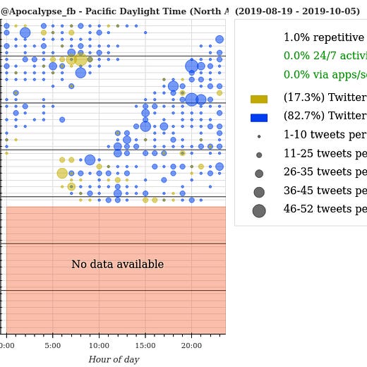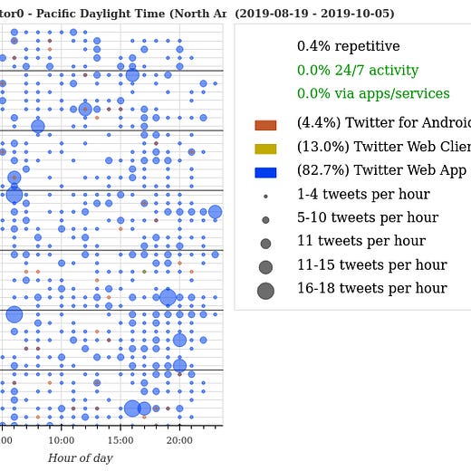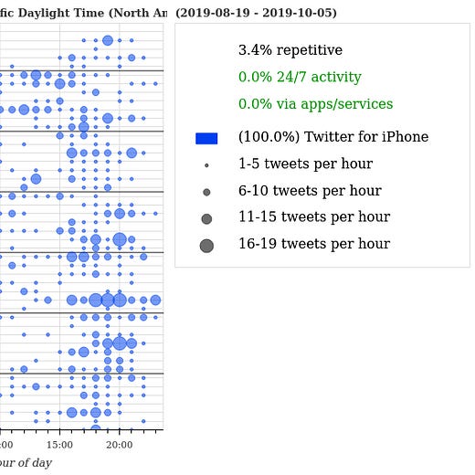 Now, let’s zero in on the “patriotic data scientist” (PDS) that Louise Mensch relied on to create both the Alfa Bank hoax and the “Russian bot” hoax. Here are some graphs they provided to Louise right before the 2016 election.