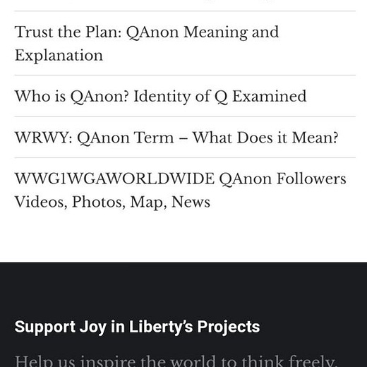 The article was from February 2020 on the website “Joy in Liberty” which has taken down all its content at this point but was all about QAnon.