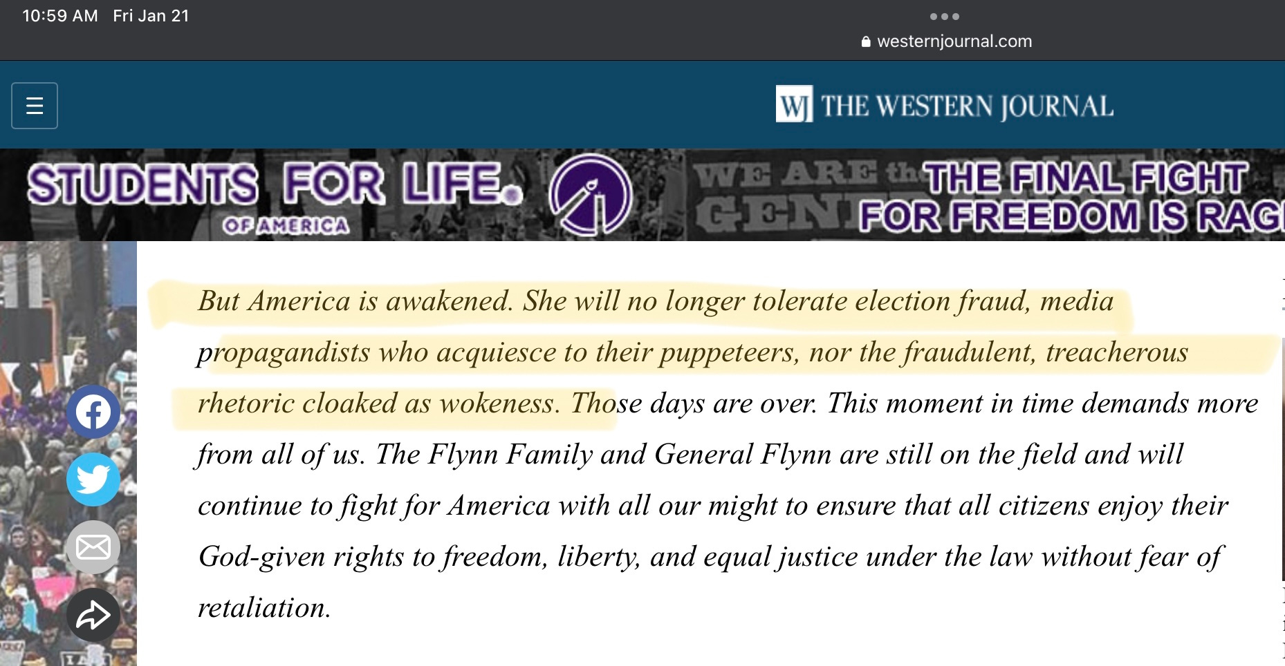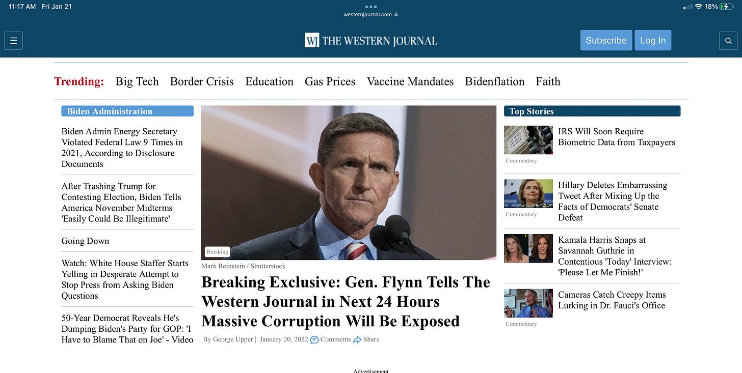 The “Western Journal” is Mike Flynn’s favorite place to post articles designed to tear at the fabric of democracy in order to enact a fascist theocracy. It is a white nationalist website. Full stop.
