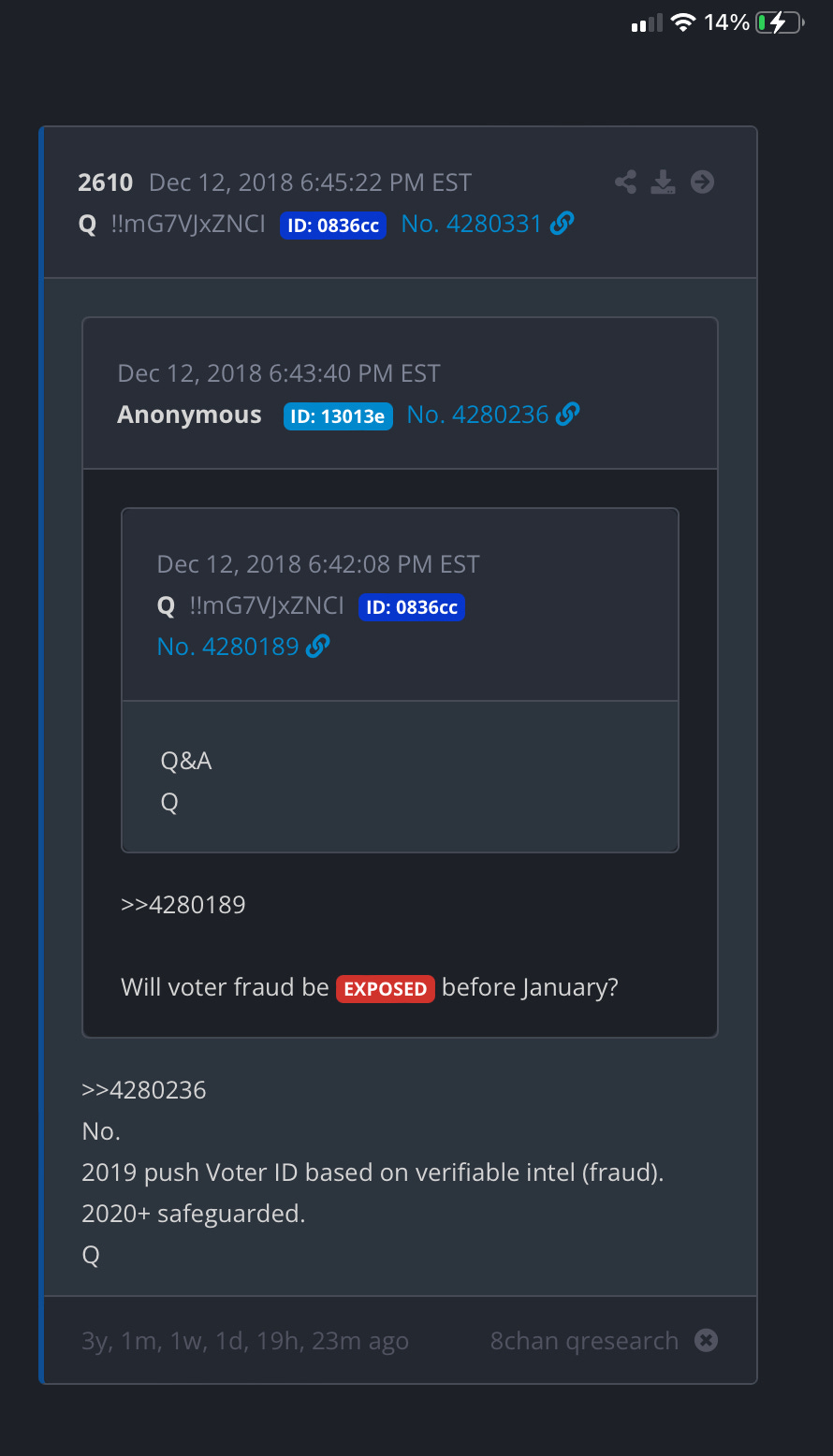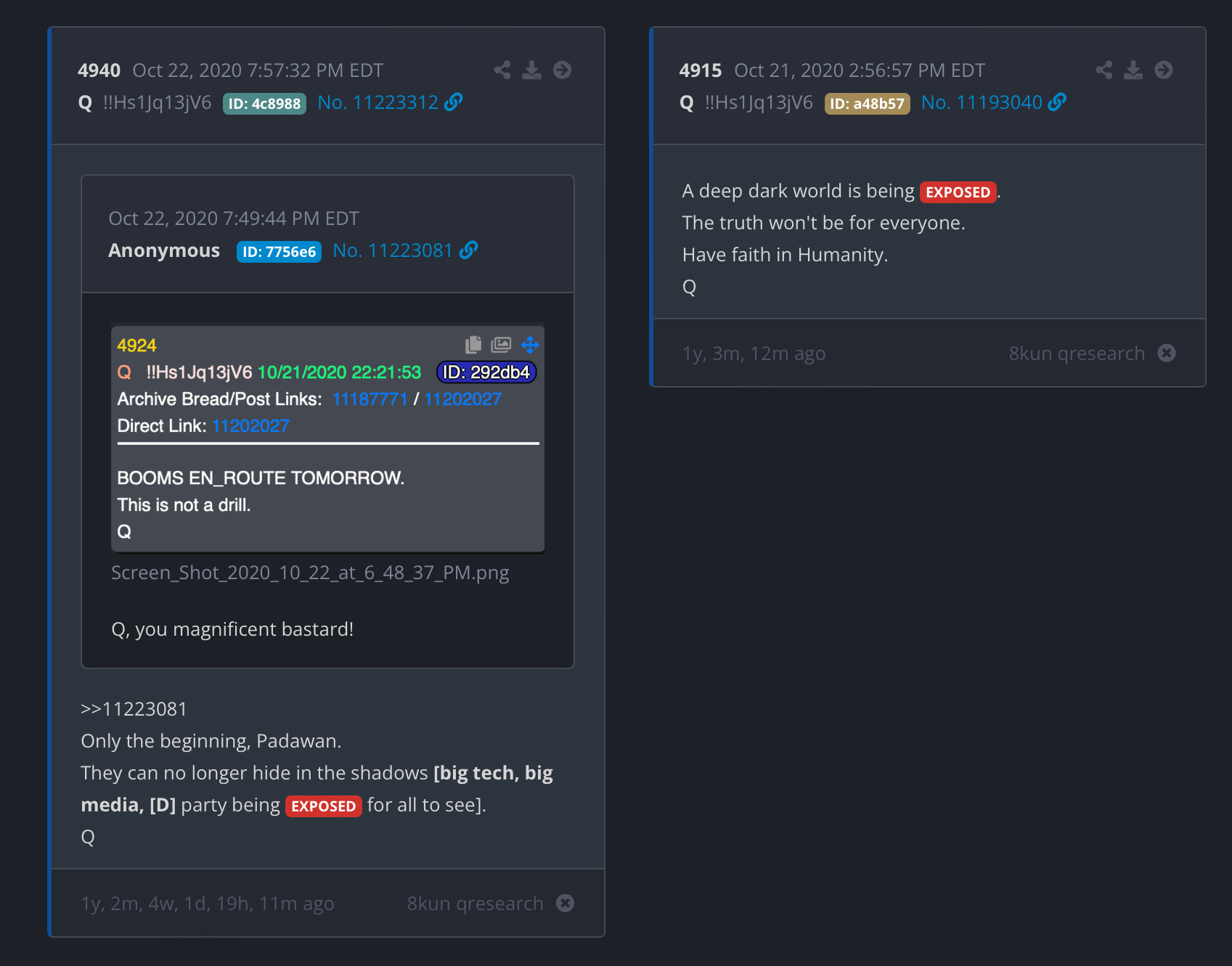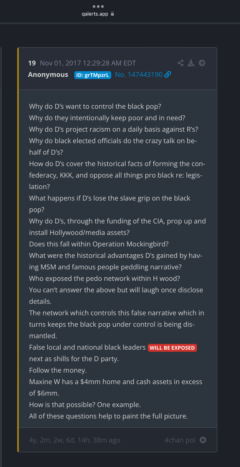 This is exactly the sort of thing that “Q” did. Promise to “expose” the “Deep State” and never delivered.