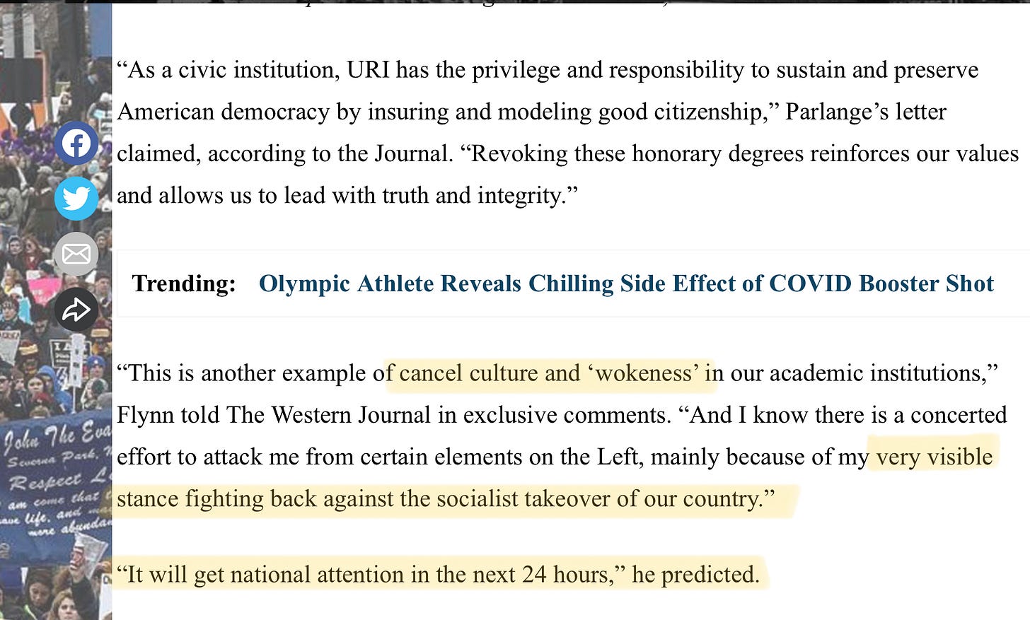 The projection and butthurtness of this is beyond comprehension. This is precisely the behavior that caused URI to make the correct decision. There is no “socialist takeover.” There is a fascist one, however, with Mike Flynn at the helm.