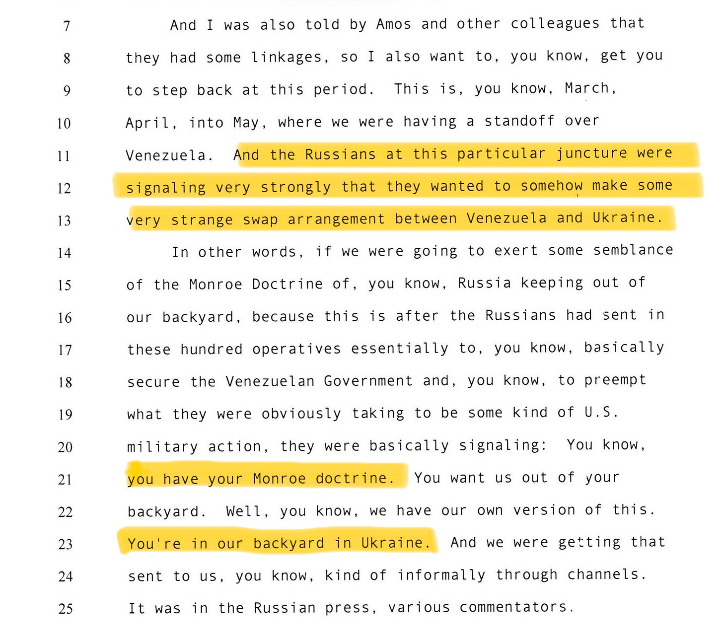 As Dave Troy points out on X, in her Congressional testimony in 2019, Fiona Hill suggested exactly that kind of deal had been on the table in the first Trump administration.