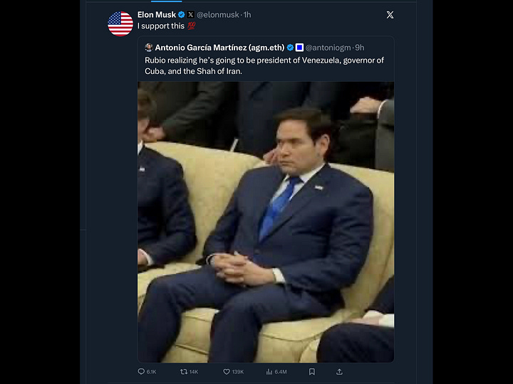 In line with this, Trump uttered something else during the presser that commentators haven't picked up. After the second time Trump talked about the oil companies needing to spend billions to upgrade the Venezuelan oil infrastructure, he said quietly (almost offhandly) that the oil companies would be reimbursed for the billions they will spend. Another payoff to his funders, this time from government (our) funds, and reduces their risk to zero.