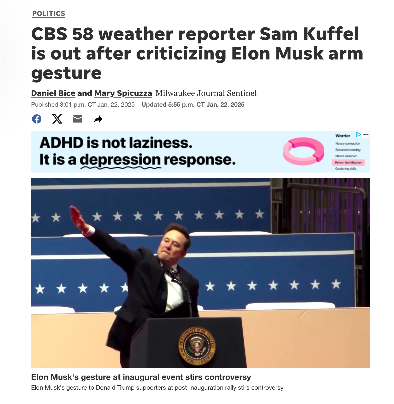 The whatabout excuses for his “Sieg Heil” are preposterous — which again, is part of the point. He has created an Orwellian alternate reality on purpose. Elon Musk was testing his Big Brother system and succeeded.