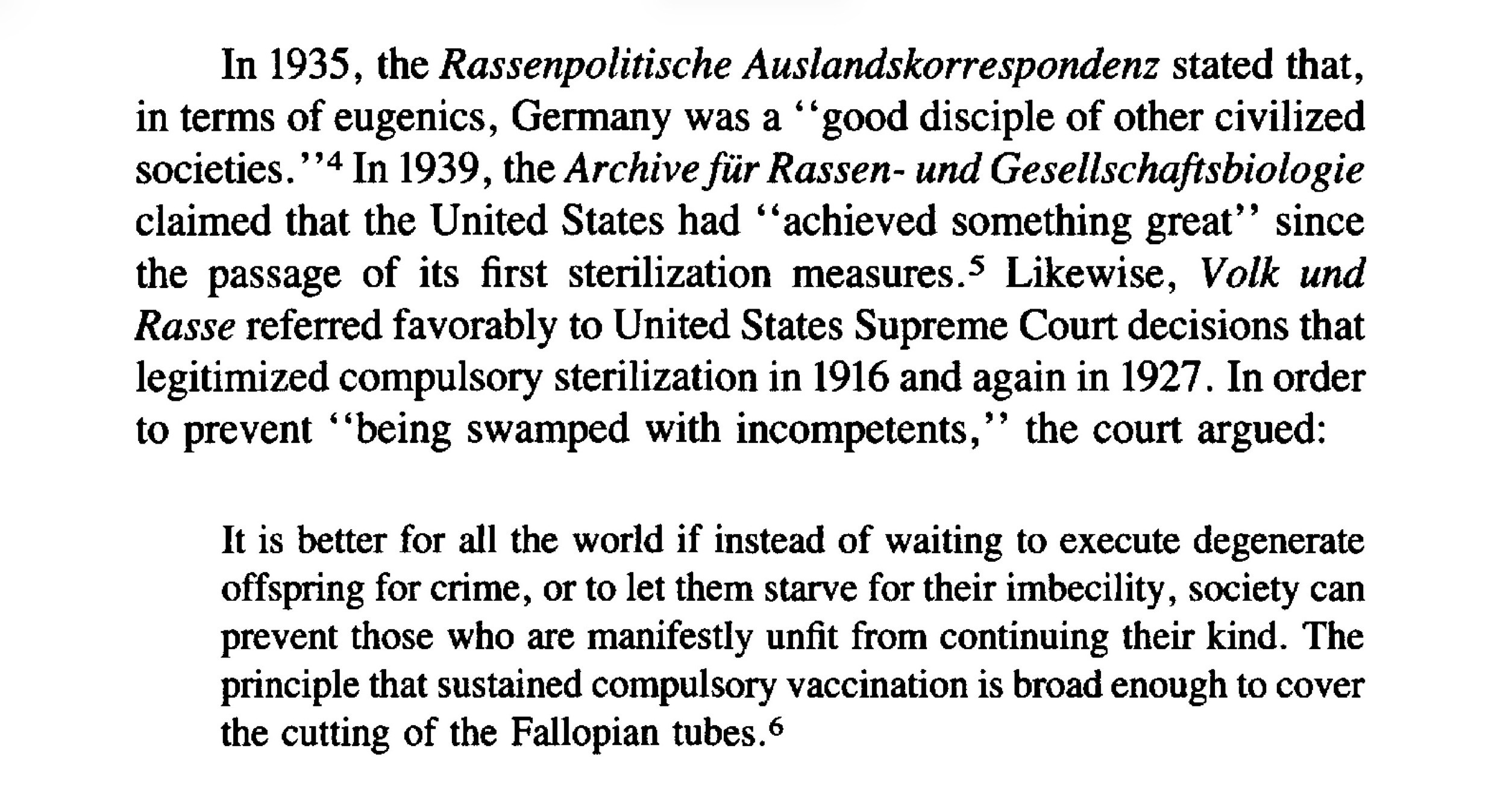 Notably, the Supreme Court found nothing wrong with eugenics policies.