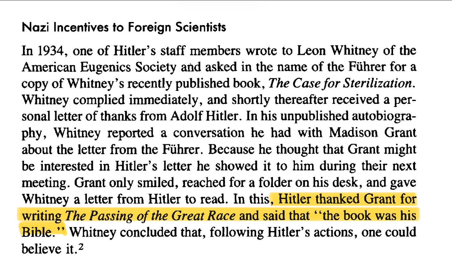 But it was not just the American government who was inspired by Madison Grant and his cohorts in the eugenics movement. There was a meeting of the minds between the Nazis—including Hitler himself—and the American eugenicists. After WWI, the collaboration between the rising National Socialist movement in Germany and American eugenicists was deep and wide—and continued in earnest all the way up until the start of WWII.
