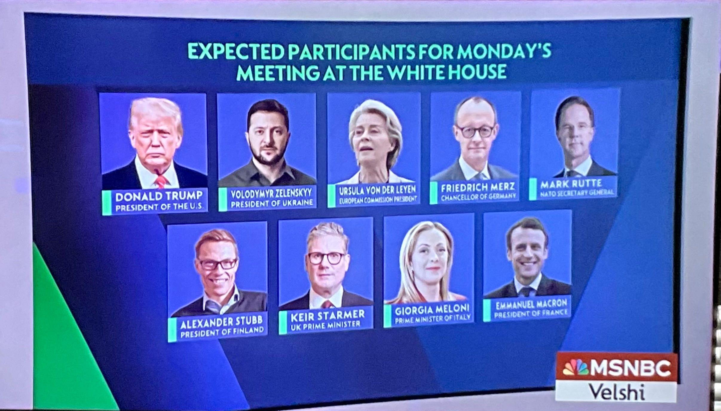 However, Zelenskyy is no fool. He sees right through it. This is who will be in the meeting at the White House tomorrow. This is very good news if the Europeans can stand up to the new Chamberlain in the form of Donald Trump. At a minimum, there will be adults in the room.