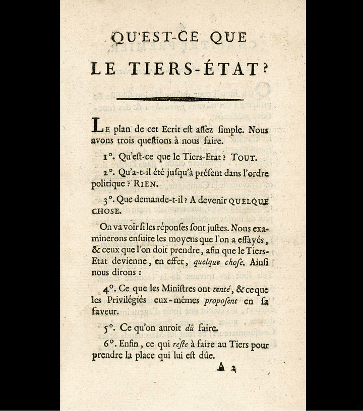 In January 1789, French Catholic priest Abbé Sieyès, published the pamphlet “What is the Third Estate?”: