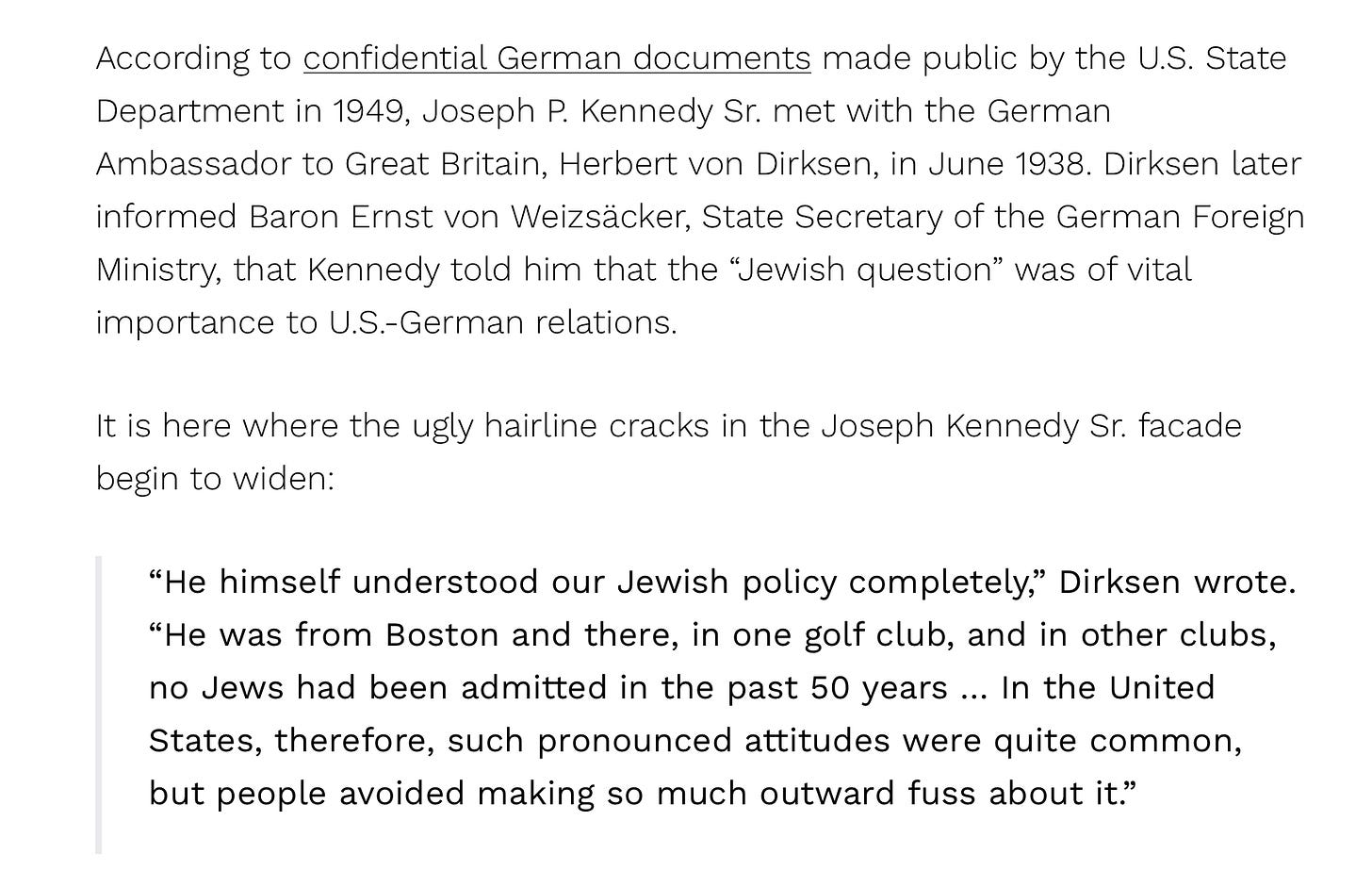 Joseph Kennedy was a Democrat, but at the time, the Democrats were still the party of Strom Thurmond and the Dixiecrats. Joe was also a criminal, an antisemite and a Nazi-sympathizer, who went very far out of his way to appease Hitler.