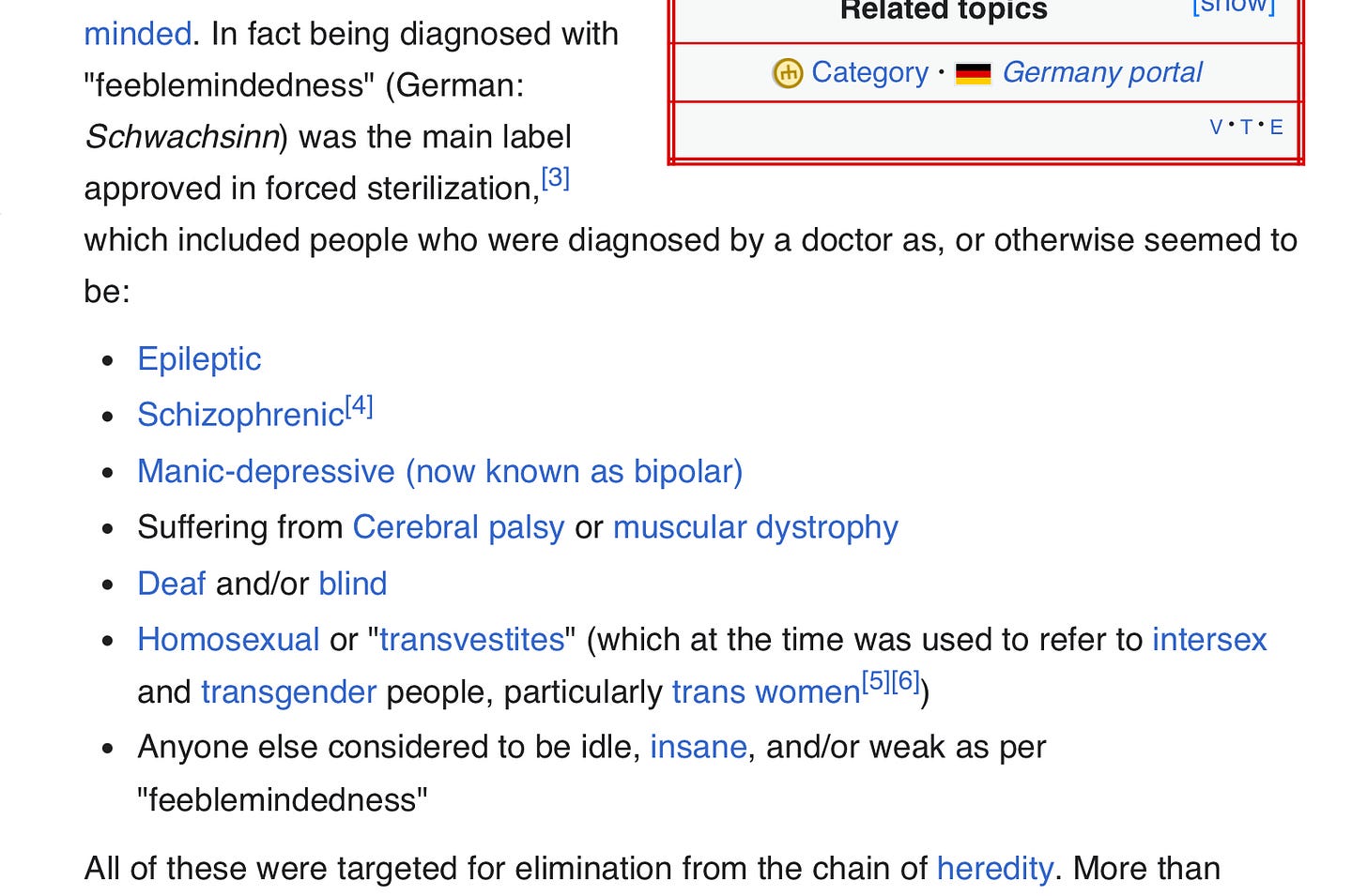 Nazi Germany had a similar program of registering those it deemed deficient. It was called Aktion-14 and ended up in hundreds of thousands of forced sterilizations and murders to eliminate people from the chain of heredity.
