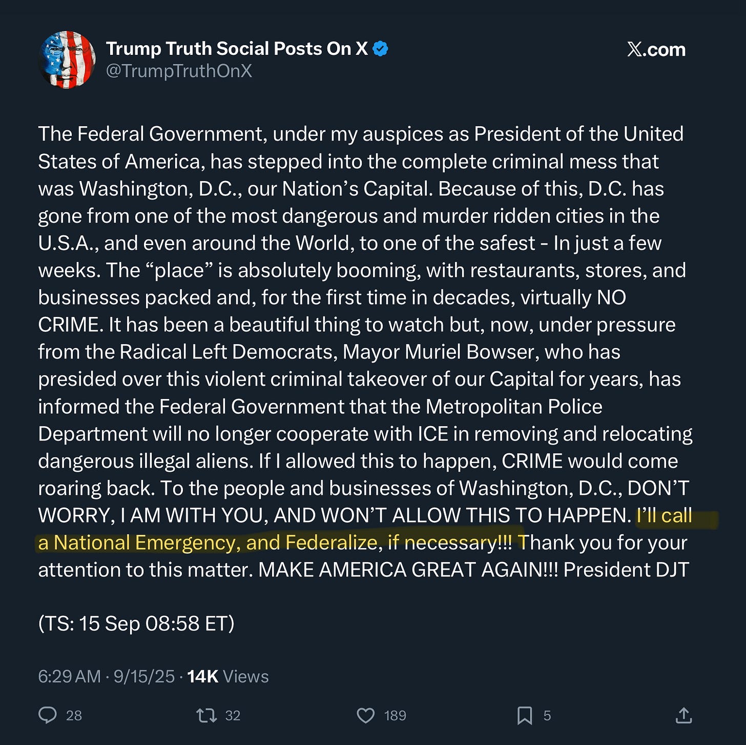 As I wrote in February, if you wanted a Reichstag, a moment to take total control, you would do exactly what the Trump regime has done in preparation. Charlie Kirk’s murder, regardless of the actual motivation for it, was simply the event they have chosen to capitalize on.