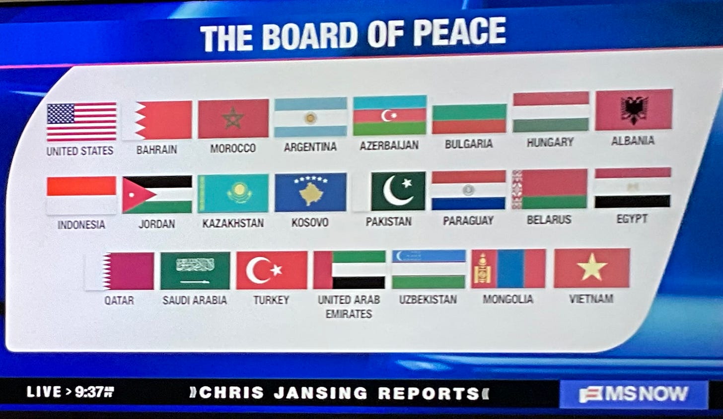 The “Board of Peace” is an international joke, a collection of amoral regimes willing to pay a billion dollars to Trump’s personal slush fund.
