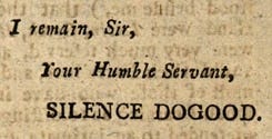 —Benjamin Franklin as Mrs. Silence Dogood in the New-England Courant, 1722