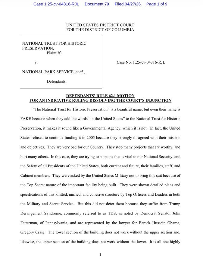 Here is the unhinged motion filed by the actual Department of Justice that is nothing short of a giant Truth Social post, complete with ALL CAPS epithets and Trump-authored insult lines.