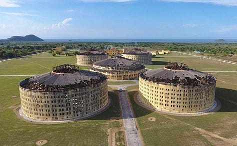 The design was first implemented in America in 1925 when Stateville Correctional Facility opened in Illinois, and was soon followed by Presidio Modelo in Cuba.