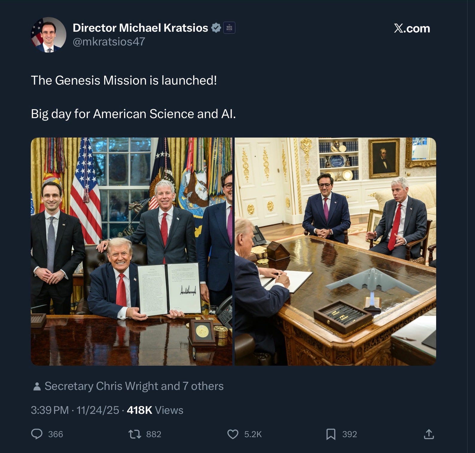 On Monday, Trump signed an Executive Order for the “Genesis Mission” that included this reference: