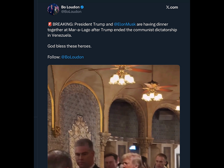 A few hours later, Musk and Trump had dinner together for the first time since Musk said Trump was in the Epstein files. I believe the timing of this reunion is no coincidence.