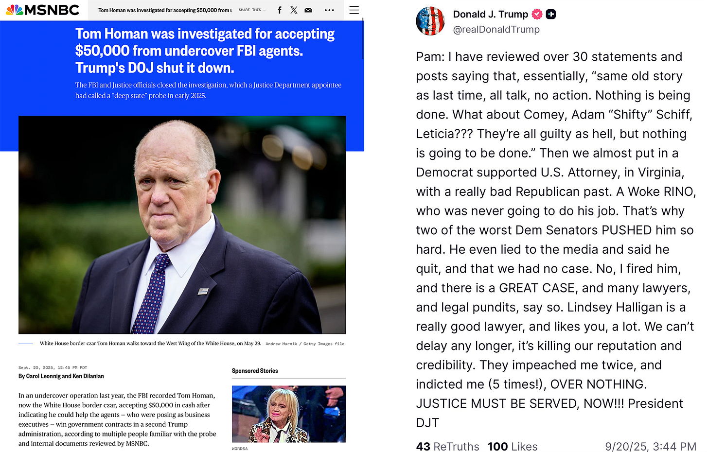 This story, it appears, led to a lawless, impeachable post by Donald Trump, in which he demands that Pam Bondi prosecute his political enemies, evidence be damned.