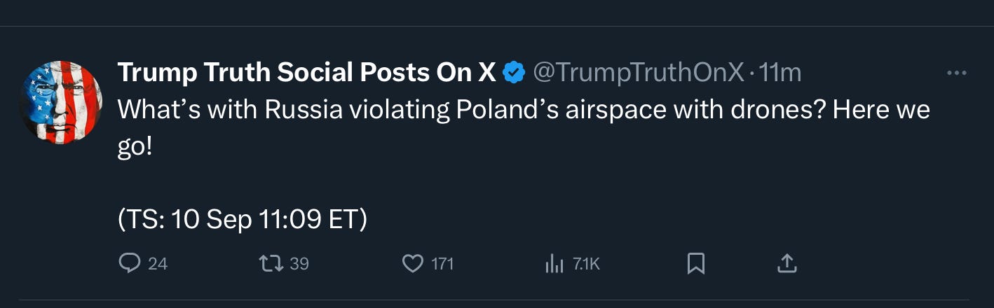 Simultaneously, multiple Russian drones violated Polish airspace; Poland shot several down with NATO support and invoked Article 4 consultations. This is the first time a NATO member has fired during Russia’s war. Poland called it the closest to open conflict since WWII.