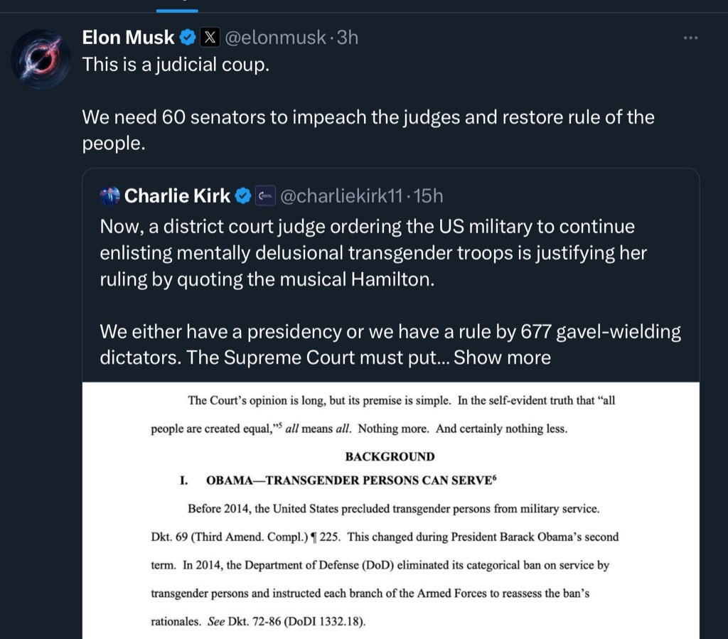 The talk of impeaching judges, is copied from Birchers in the 60s who wanted Earl Warren impeached, for the Brown v Board of Ed decision.
