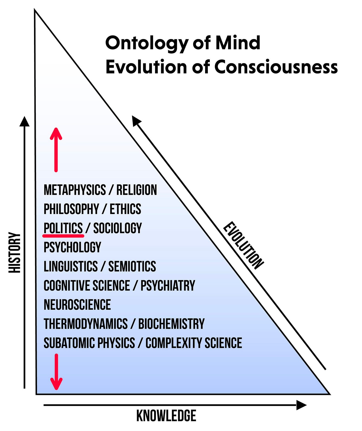 The political view of the human condition is a tiny window into reality. I believe the solution to our collective problem must involve the other layers of our mind’s ontology and an understanding of how these layers interact. Moreover, the boundary of our understanding, both at the “lowest” scientific and physical layer—quantum physics and complexity science—and at the “highest” metaphysical layer—how to help provide people with meaning in life—should be a focus of any new movement. These boundaries are where our evolution as a species is being steered—and it is at these boundaries our enemies are concentrating their power.