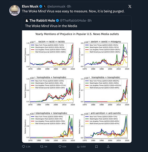 Elon Musk’s tweet uses the language of disgust—viruses and purging—to justify the idea that any discourse about bigotry—from homophobia, to racism, to sexism—is worthy of stamping out. This is using linguistics to create a psychological reaction which will result in the political opinion he wants.